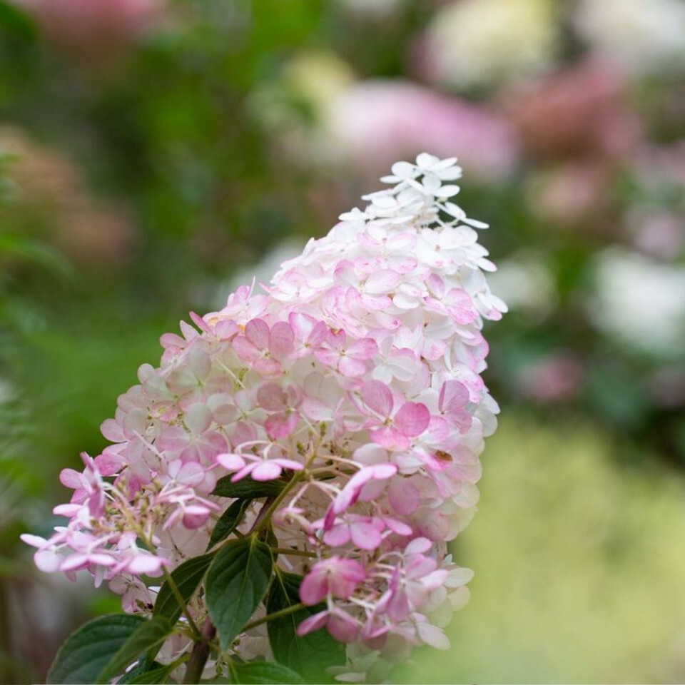 Hydrangea paniculata ‘Candlelight’ is a hardy, sun-tolerant shrub with striking conical blooms that begin creamy white and deepen through soft pink tones as the season progresses. It’s vigorous yet well-behaved, making it ideal for gardens and large containers where you want impactful flower power from late summer into autumn. With lush foliage that also develops warm tones in cool weather, it’s both a spring and autumn standout in the landscape.