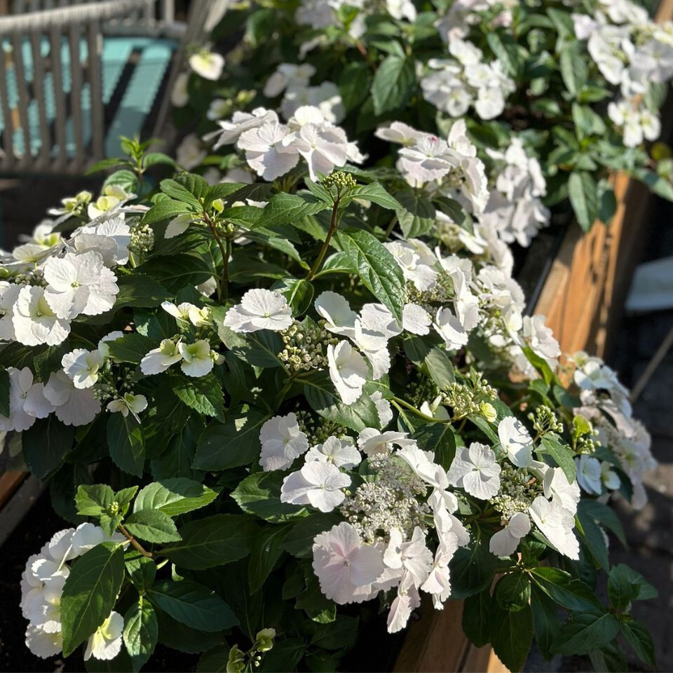 If you want a hydrangea that makes a dramatic yet elegant statement, Hydrangea macrophylla ‘Runaway Bride’ is a top pick. This award-winning variety produces long, garland-like stems laden with crisp white blooms. Unlike many traditional hydrangeas, it doesn’t require pruning to maintain its beautiful form, flowering prolifically from late spring through to autumn. Its arching habit adds graceful structure to garden beds, hedges or large pots